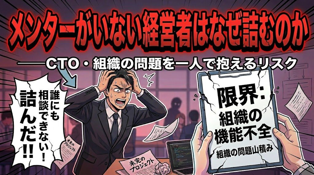 この記事では、なぜメンター不在の経営者が組織課題で詰まりやすいのか、なぜCTOや開発組織の問題を一人で抱えると危険なのか、そして外部の視点がなぜ意思決定の質を上げるのかを整理します。